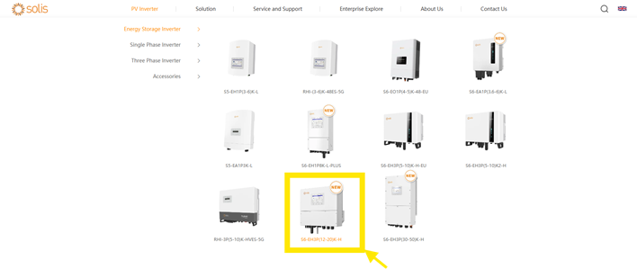 - Στη συνέχεια, πλοηγηθείτε στους Φ/Β μετατροπείς και επιλέξτε το συγκεκριμένο μοντέλο μετατροπέα (για παράδειγμα, S6-EH3P(12-20)K-H)