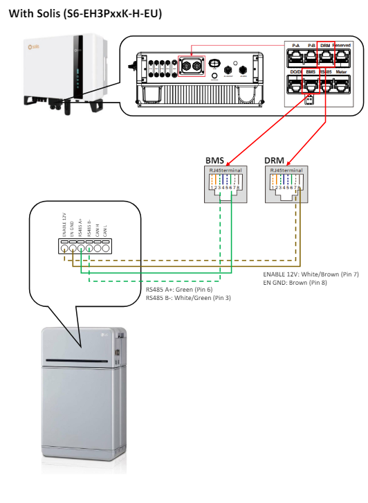 To interconnect your Green solutions battery with Solis inverters, please note the following communication port settings on the BMS side: