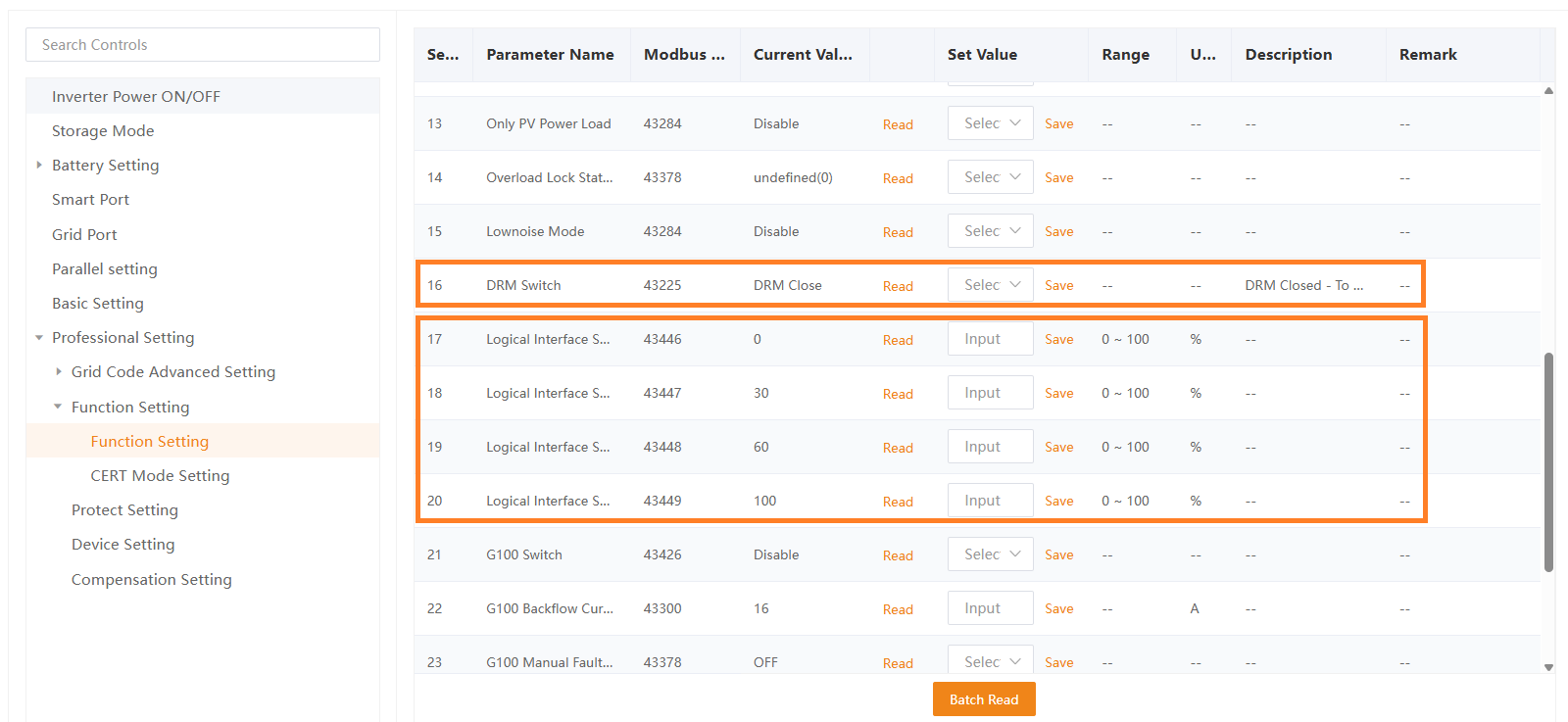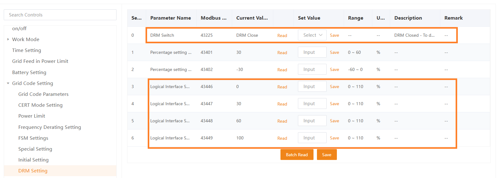 Setting DRM Parameters (i.e. S6-EH3P(12-20)K-H or S6-EH3P(29.9-50)K-H):