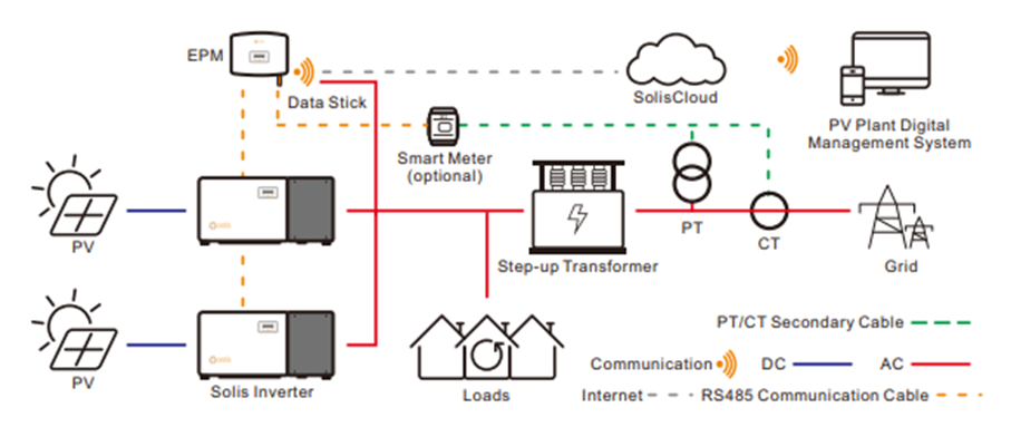 In this case, a PT (or VT) will be required to convert the medium voltage level into an acceptable low voltage for the AC supply of the EPM device and for the AC voltage measurement of the smart meter.