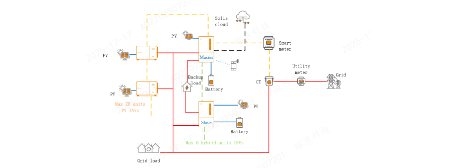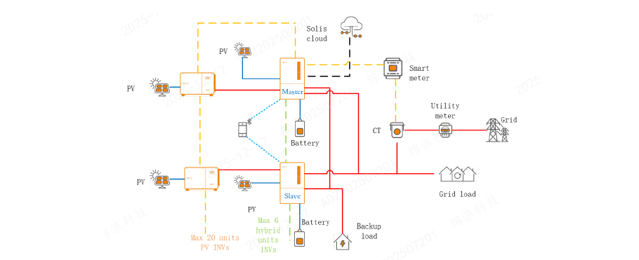 - Up to 6 hybrid inverters