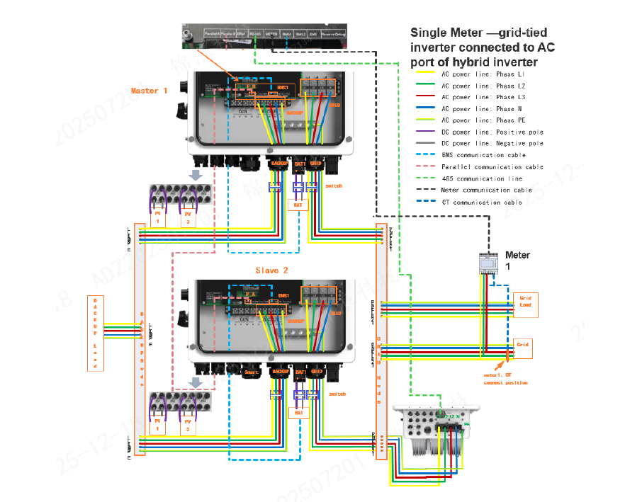 2.1 Single Meter – Grid-tied inverter connected to AC Port