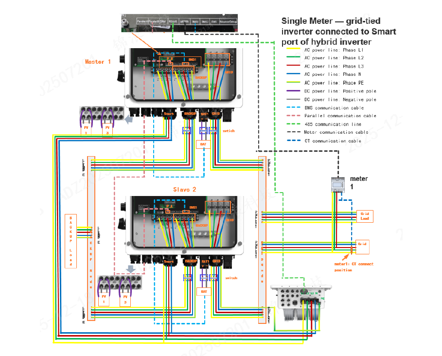 - Connect parallel communication cables between master and slave inverters.