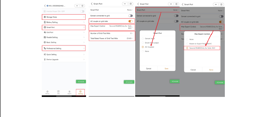 - Enable AC Coupling or Smart Port settings based on connection type.