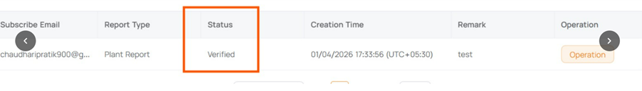 7.After successful operation need to check this status its showing Verified then only customer receiving Report over email which is subscribed