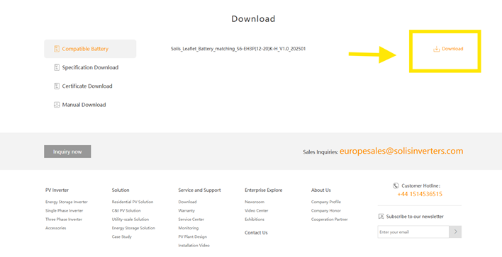 Pour trouver la liste de compatibilité des batteries, visitez notre page d'accueil à l'adresse https://www.solisinverters.com