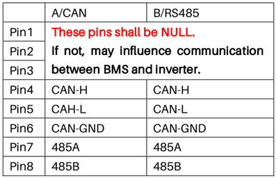 Ako želite povezati Dyness Tower bateriju sa Solis pretvaračima, evo specifikacija komunikacijskog porta na BMS strani: