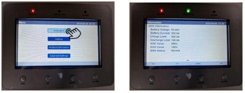 Annak érdekében, hogy az inverter minden információt megfelelően jelenítsen meg és fogadjon, kettős vezérlést kell végezni az Információ, majd a BMS információ beírásával.