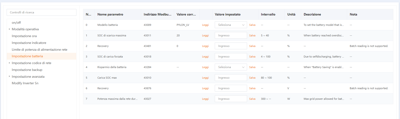 - Verificare le impostazioni dell'inverter: assicurarsi che le impostazioni della batteria dell'inverter (ad esempio, il tipo di comunicazione BMS) corrispondano alla configurazione Pylontech consigliata.