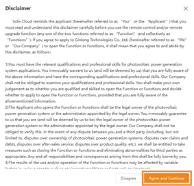 - Pasirodys iššokantis langas. Atidžiai perskaitykite atsakomybės atsisakymą ir sutikite su sąlygomis, kad galėtumėte tęsti. Pastaba: jei nesutinkate su sąlygomis, prieiga prie keitiklio valdiklio nebus suteikta.