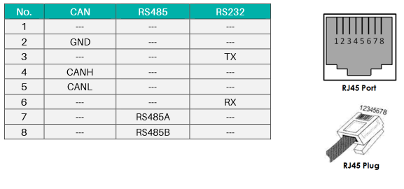Port RJ45 corespunzător definiției pinului magistralei CAN